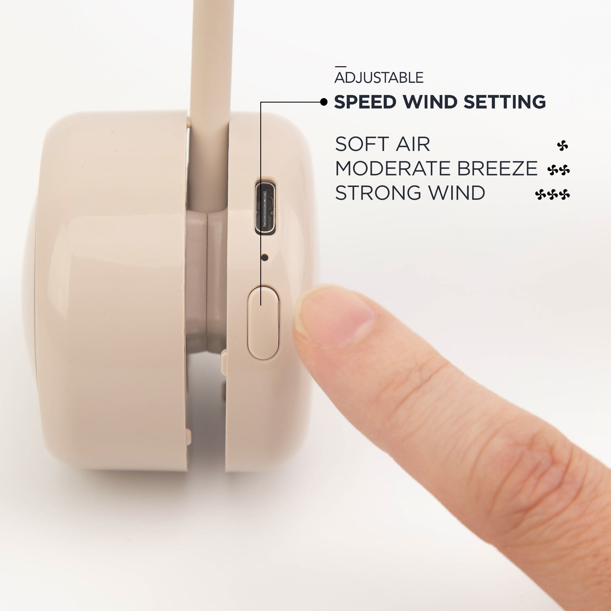 Curling Bladeless Neckband Rechargeable Portable Fan Beige